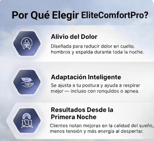 EliteComfortPro Almohada Ergonómica Antiestres ¿Te Despiertas con Dolor de Cuello y Espalda?